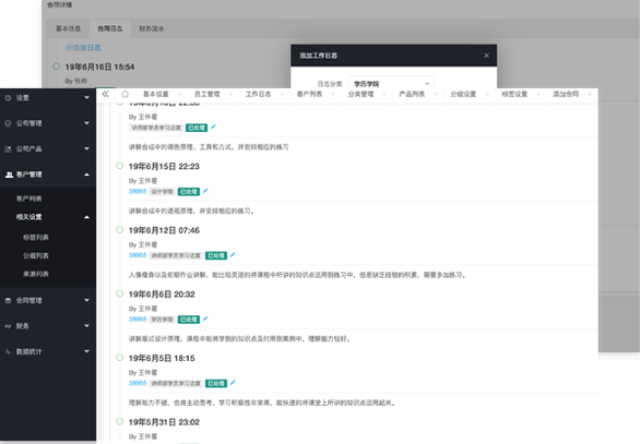 沟通记录:可为客户增加每次的沟通记录